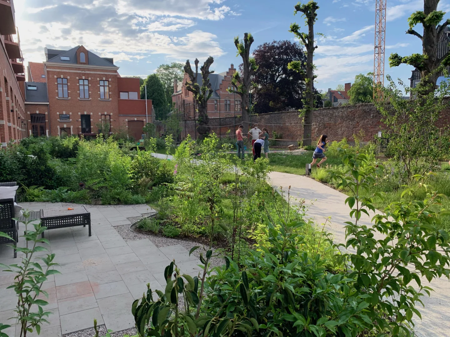 Vier doelstellingen worden daarbij vooropgesteld: maximale aandacht voor biodiversiteit, een klimaatadaptief ontwerp, stimuleren van de relatie tussen mens en natuur en het creëren van ontmoetingsplekken voor mensen. De heel diverse gebruikerswensen (fietsenstalling, zit- en ontmoetingsplekken, speelplekken, rustplekken, moestuin, pluktuin, kippenhok) worden gecombineerd en gekaderd met een rijke beplanting die biodiversiteit en klimaatadaptatie voorop stelt en bevordert. De informele inbreng van de programmatie zoals de zandzone, picknickplek draagt extra bij tot de ongedwongen en open atmosfeer van de tuin: een plek die verder kan ingevuld en toegeëigend worden door de bewoners.