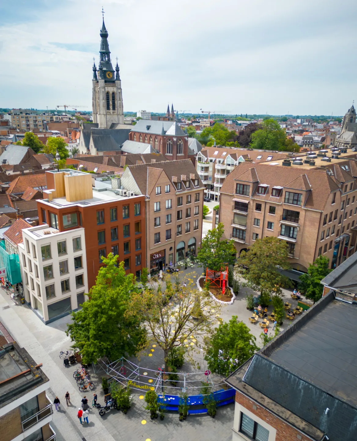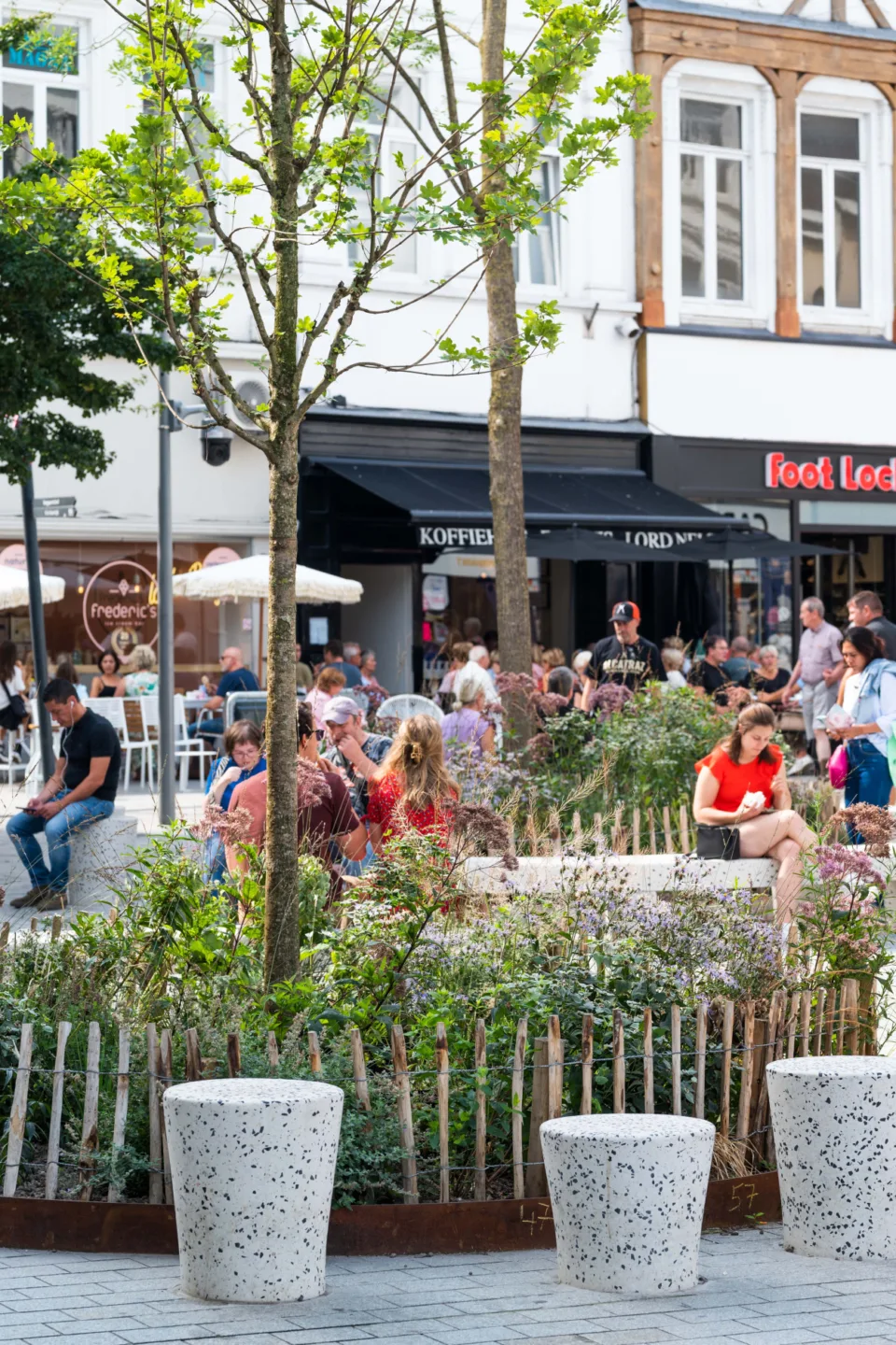 As part of the redevelopment of Kortrijk’s pedestrian shopping district, the City of Kortrijk, 51N4E, and Plant en Houtgoed developed a series of temporary interventions that placed nature and public use at the forefront. Through workshops, surveys, and on-site testing at locations like Grote Kring and Veemarkt, new forms of public space were explored.