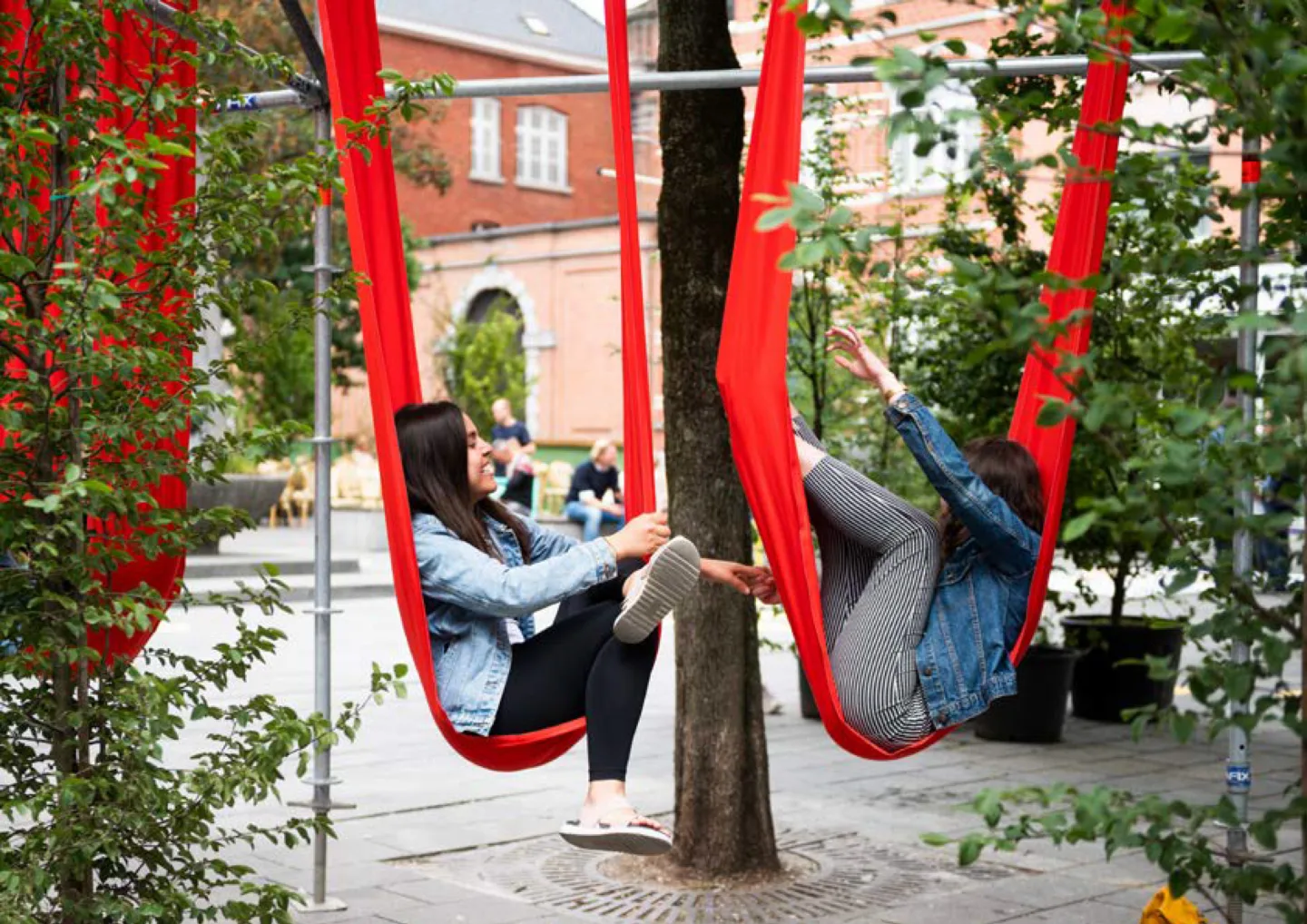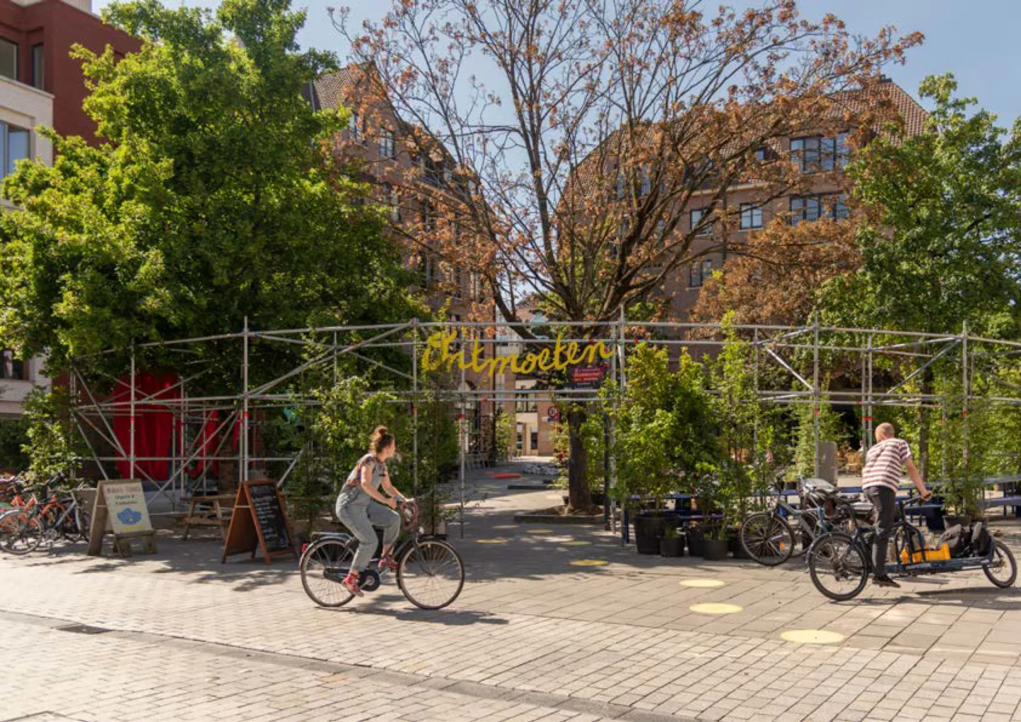 At the heart of these experiments was a mobile forest: a temporary green installation that transformed paved urban areas into a natural oasis. Within this setting, space was created for rest, social interaction, play, and temporary hospitality. In parallel, more permanent measures such as depaving and greening of key locations were initiated.