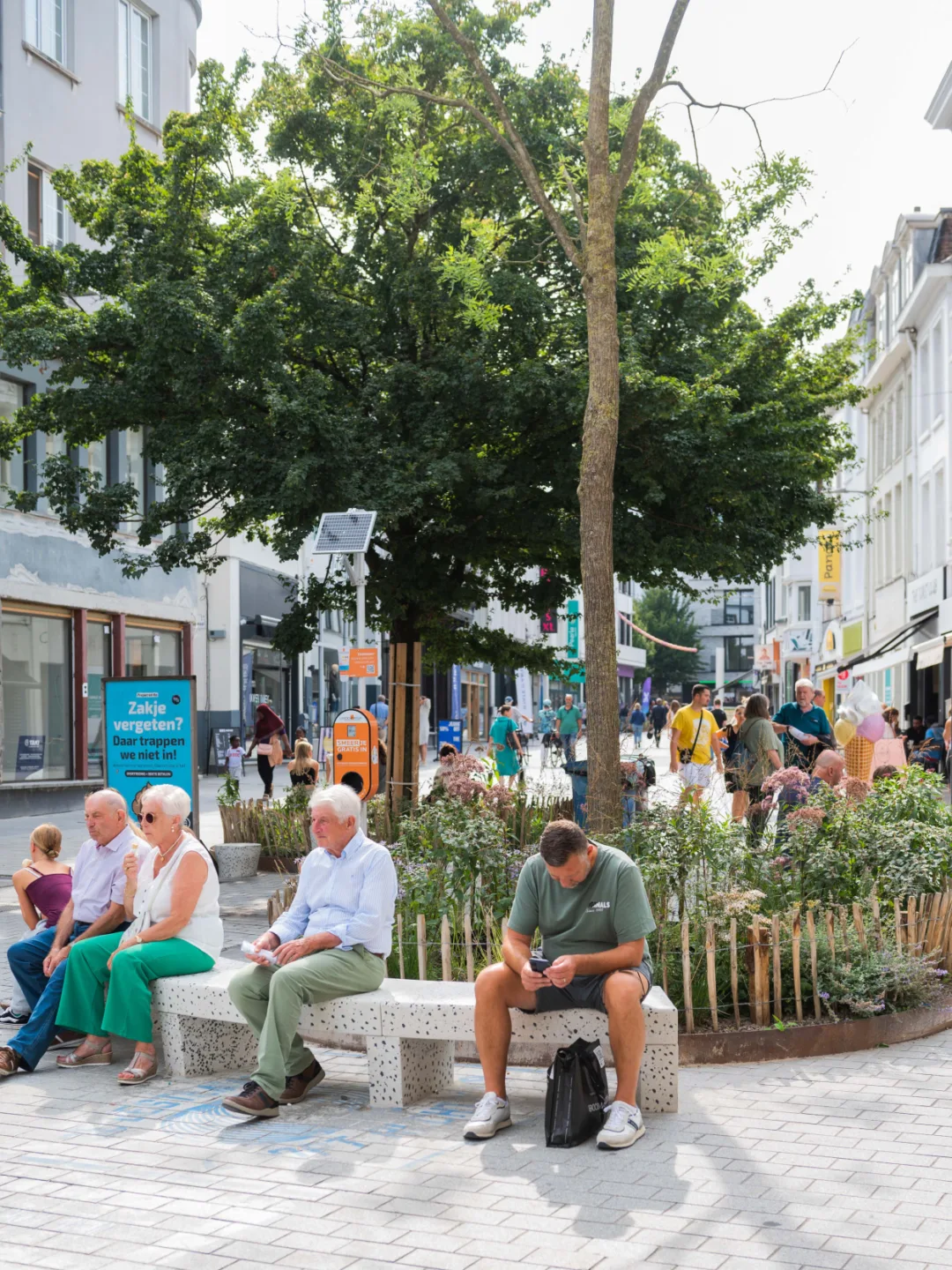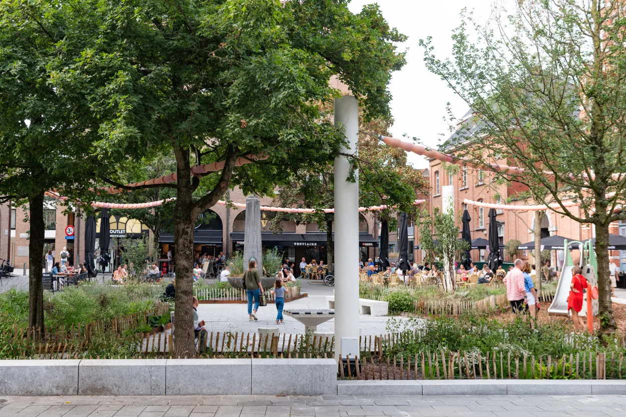 Centraal in deze experimenten stond een mobiel bos: een tijdelijke, groene installatie die de verharde stadsruimte tijdelijk omvormde tot een natuurlijke oase. Binnen deze setting werd ruimte gecreëerd voor rust, ontmoeting, spel en tijdelijke horeca. Parallel werd gestart met structurele ingrepen, zoals ontharding en het vergroenen van strategische plekken.
