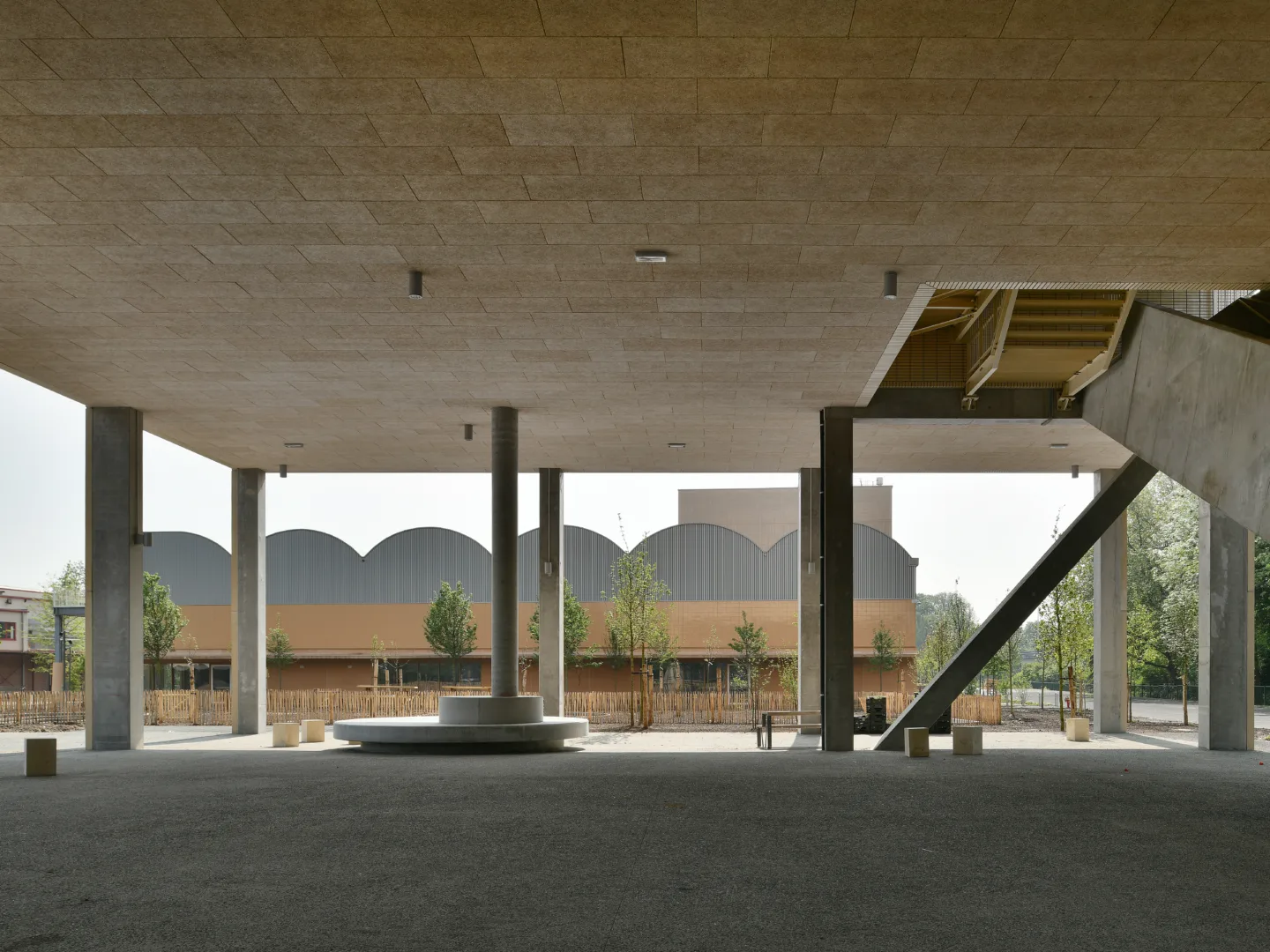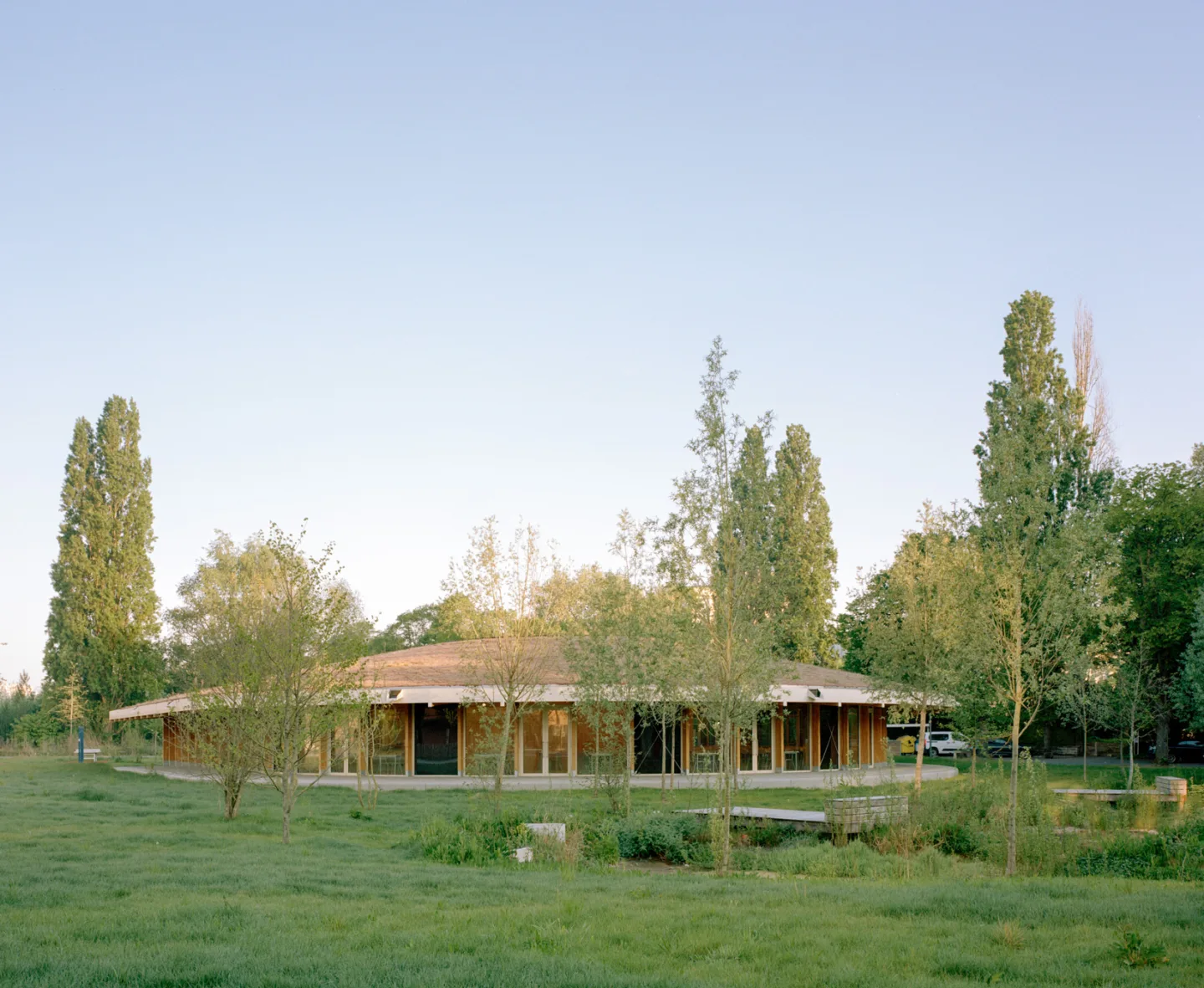 Situated between the woodland and wet zones, a varied grassland acts as an ecological transition zone. This space softens the presence of infrastructure and connects the campus’ central axis with a sense of openness and spatial fluidity.