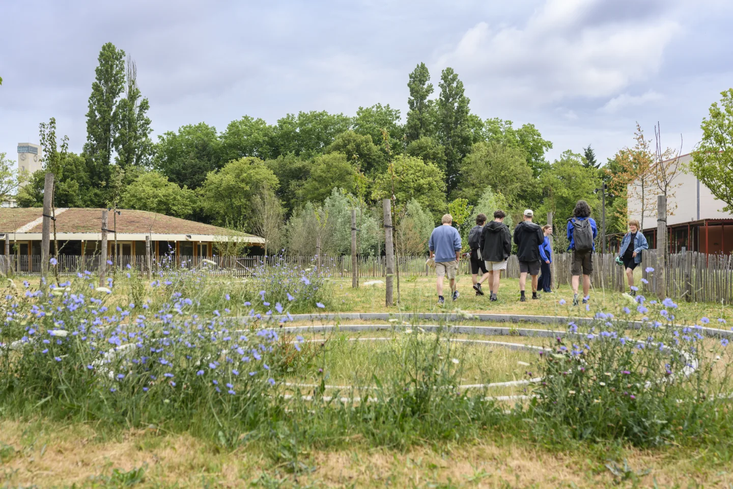 Tussen bos en natte zones bevindt zich een gevarieerde graslandzone, die als ecologische overgangszone de centrale as verbindt, infrastructuur verzacht en een organisch en ruimtelijk gevoel geeft.