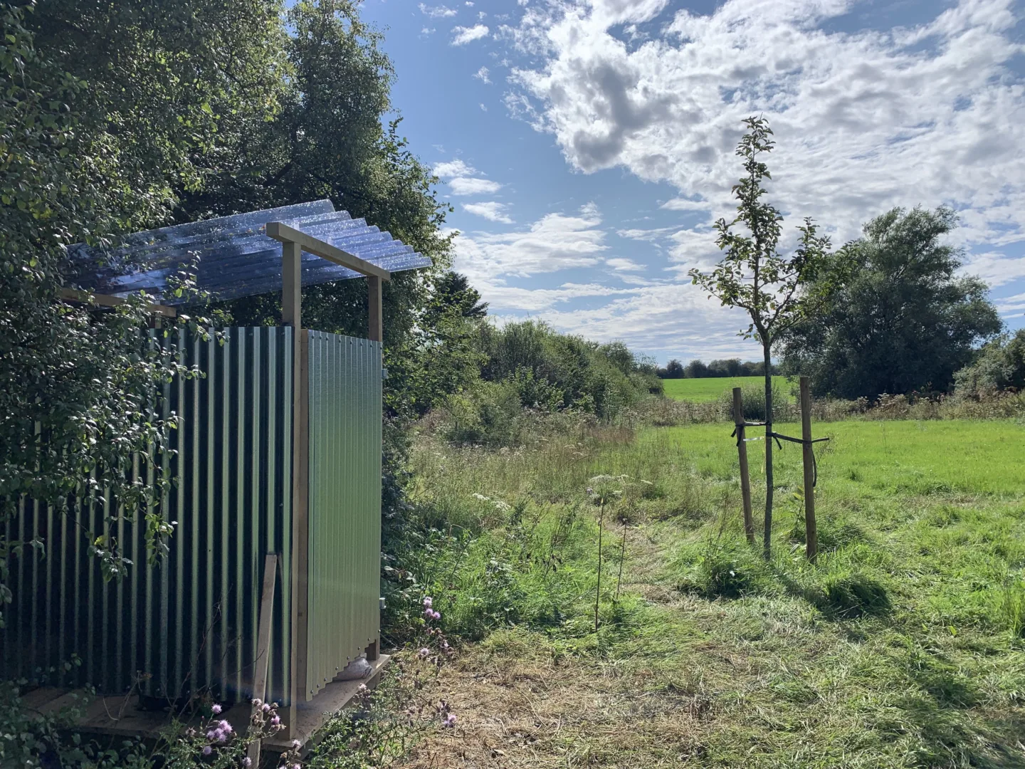 Aanvullend werden discrete landschappelijke installaties ontworpen die de site bruikbaar maken voor kleinschalig en tijdelijk verblijf. Een houten ponton aan het water, een composttoilet en een buitendouche zorgen voor basis infrastructuur met minimale ecologische impact. Alle voorzieningen werden gerealiseerd in lokaal geoogst, onbehandeld eikenhout en sluiten naadloos aan bij de natuurlijke context. Het resultaat is een verblijfsplek waarin mens en natuur in harmonie samenkomen, zonder het ecosysteem te belasten.