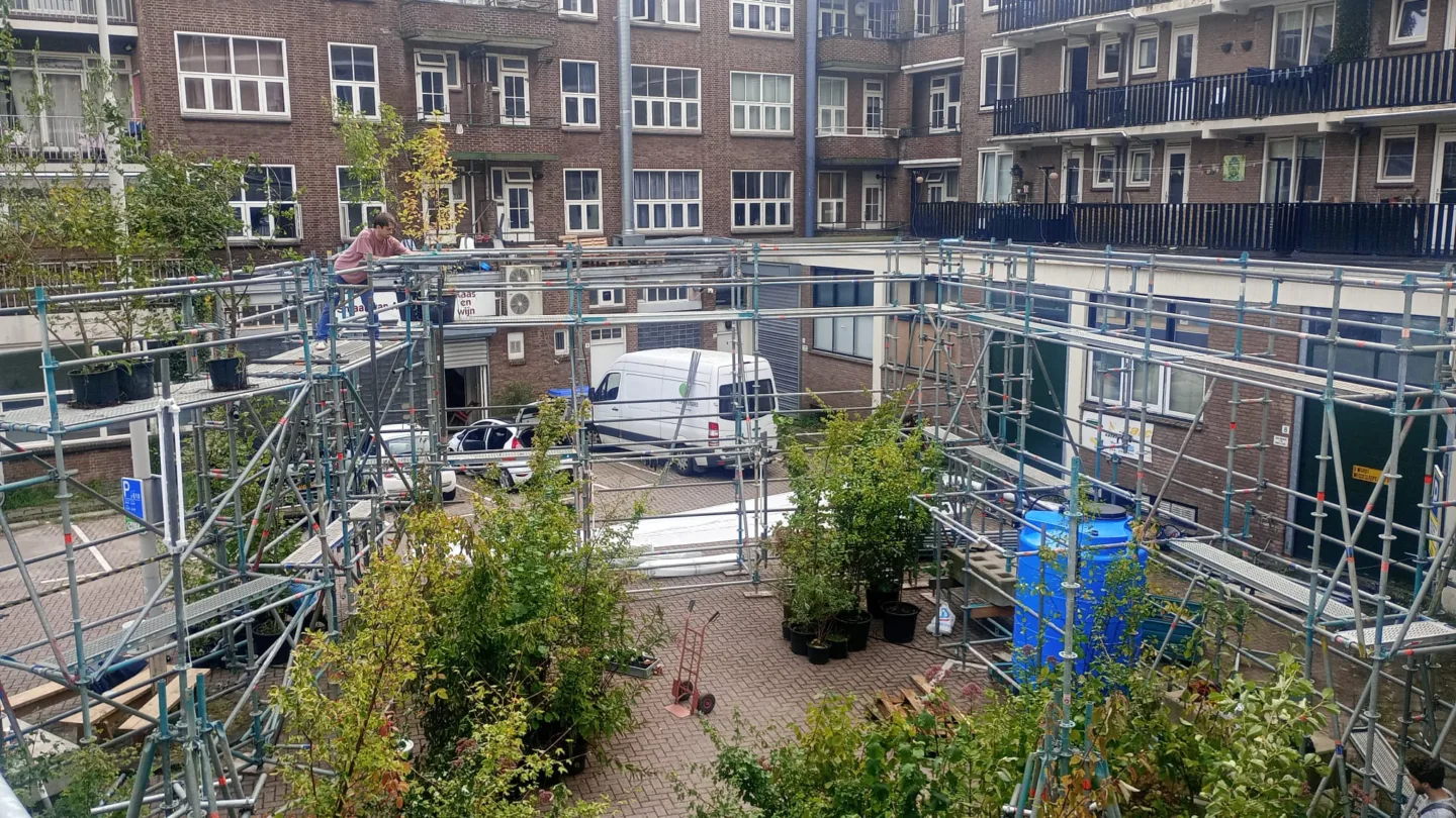 As part of their spatial research into innovative uses of characteristic Rotterdam inner courtyards, Dérive designed an experimental installation at Jonker Franshof. The project explores how these often monofunctional, logistics-oriented interior spaces can be transformed into layered, meaningful urban rooms that accommodate both social and ecological dynamics.