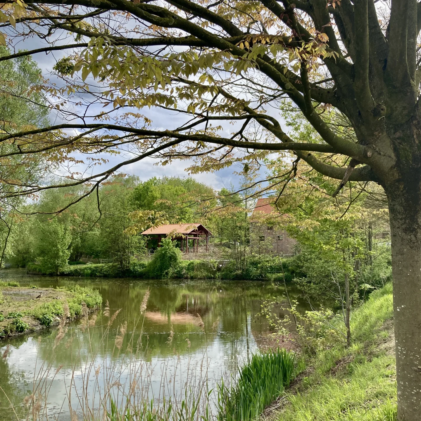 - A pavilion overlooking the pond with ruderal flora creating a transition to the surrounding landscape