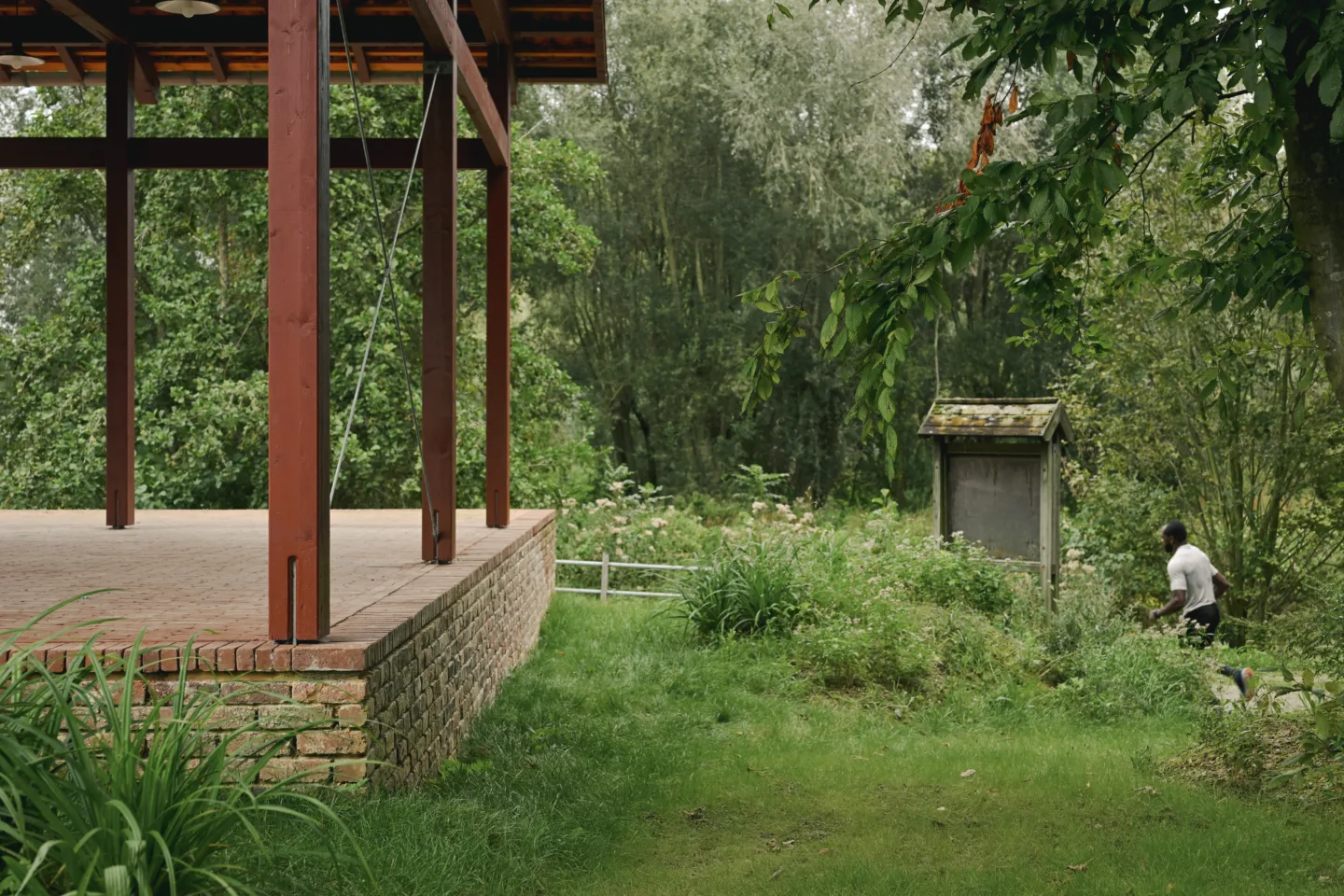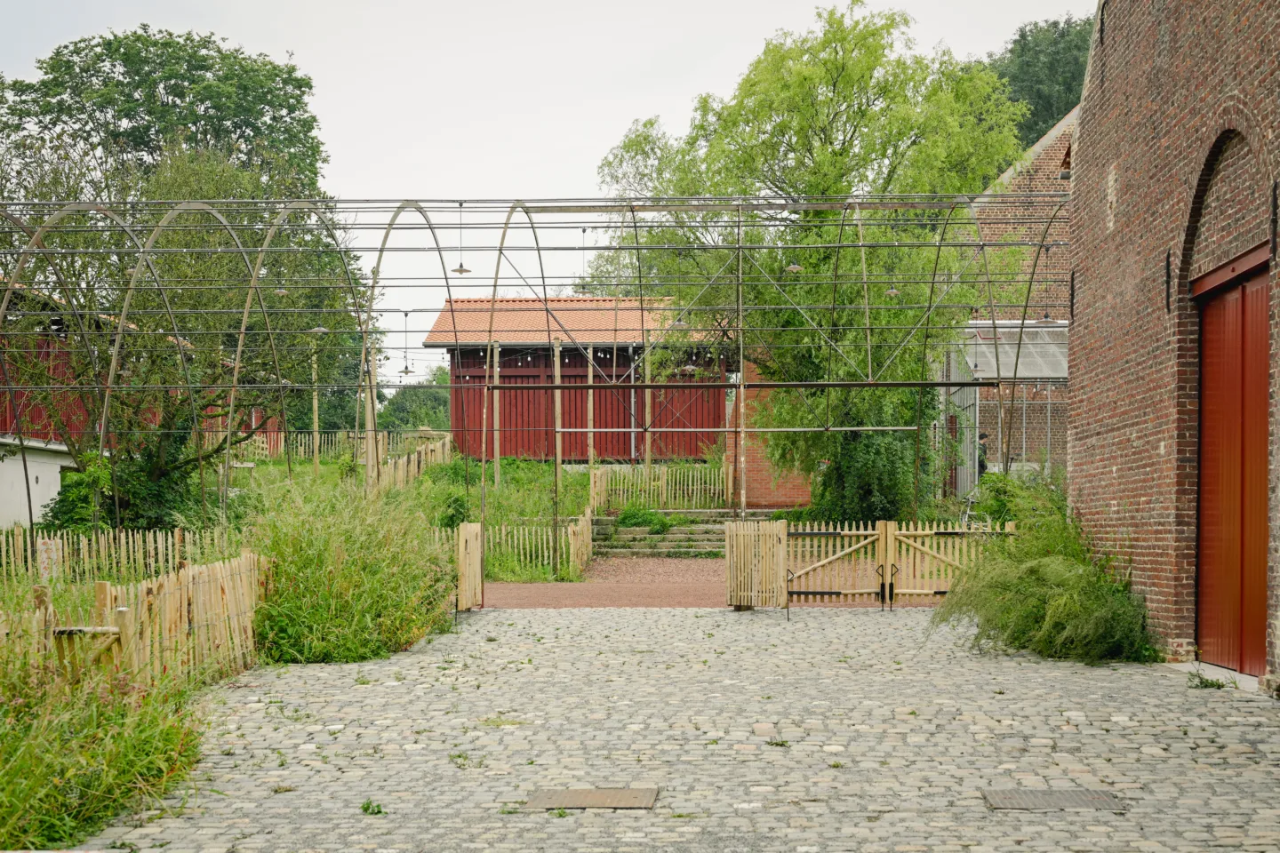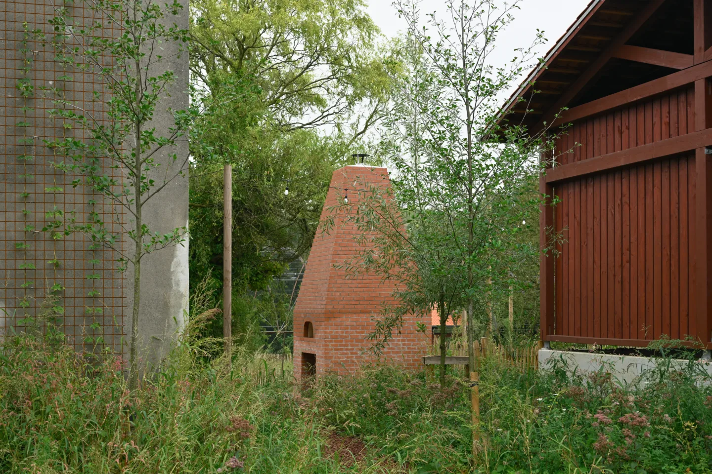 The design concept organizes the site as a patchwork of distinct elements, each defined by its own identity, program, architectural feature, surface treatment, and associated ecosystem or vegetation type. At its core lies a central agora that transforms the formerly enclosed farmyard into an open, connective space—serving as the spatial and social heart of the site, while linking the street level to the adjacent Neerpede park.