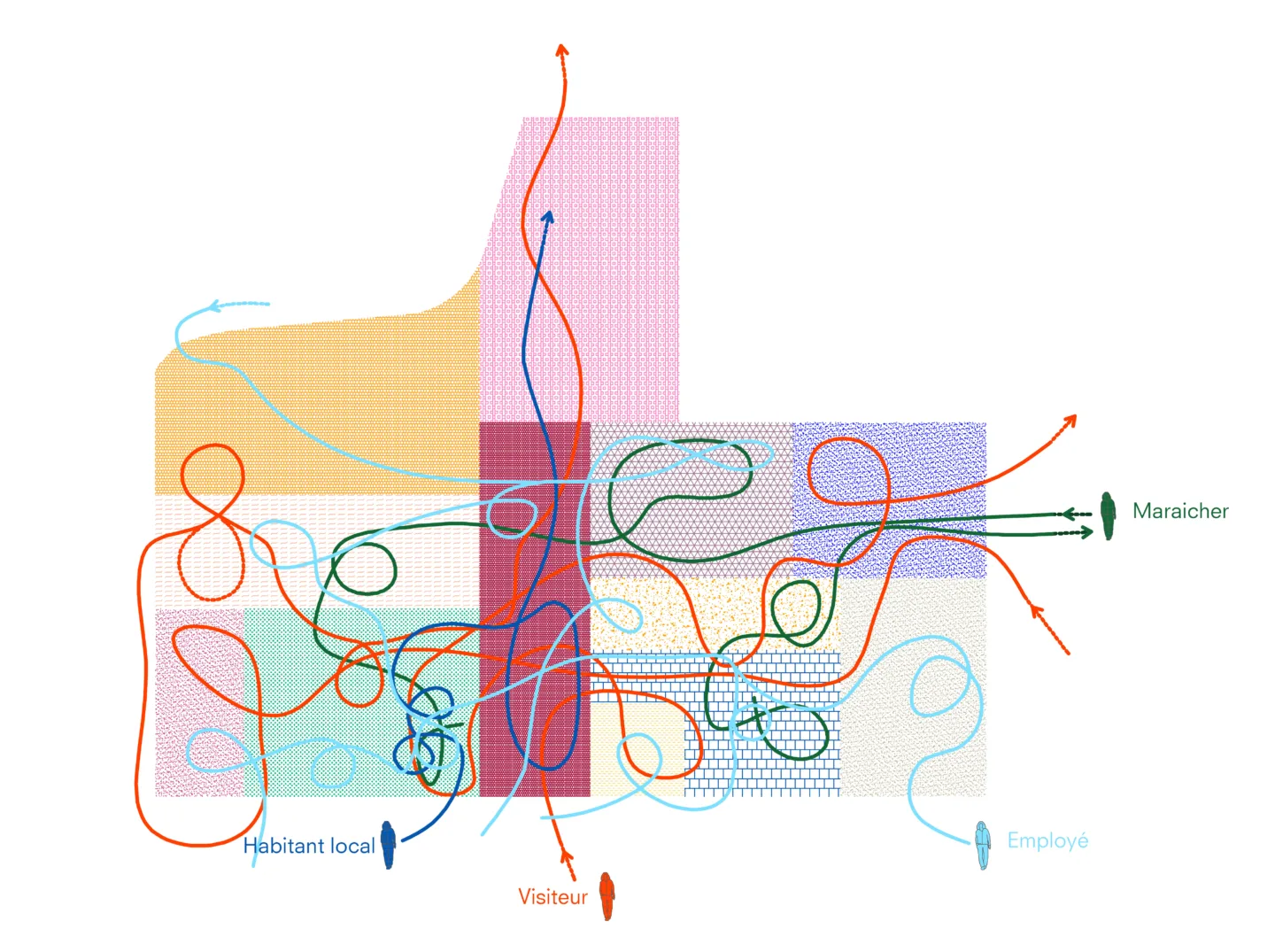 In antwoord op een projectoproep van Brussel Leefmilieu werd een voorstel uitgewerkt en begeleid voor een oude voormalige boerderij en naastliggend woonhuis. De site krijgt een gemengde programmatie met focus op transitieprojecten rond duurzame landbouw. Vier vzw’s zullen na oplevering van de werken de site gebruiken. Zowel landschap als gebouwpatrimonium weerspiegelen de ambitie om maximaal te delen, uit te wisselen en samen te werken. Het geheel is opgevat als een patchwork van elementen met elk hun eigen identiteit en programmatie waarbij telkens een architecturaal element of gebouw gecombineerd wordt met een eigen type (half)verharding en eigen ecosysteem/vegetatietype. Het geheel wordt opgebouwd rond een centrale agora die de voormalige gesloten boerderijsite openbreekt en niet alleen een centraal hart vormt voor de site maar ook een verbinding tussen straatniveau en het achtergelegen park rond de Neerpedevijver. Rond deze centrale plek wordt het landschap verder opgebouwd met tien andere entiteiten: een pavilioen met uitzicht op de vijver met ruigteflora die de transitie vormt met het achterliggend landschap, een educatieve moestuin met kleinfruitcolletie, een verwerkingshal voor groenten en kleinfruit, een boomgaardzone met hooilandvegetatie, een verkoopserre met thermofiele vegetatie, een woofer/bureauplek met bosflora,…