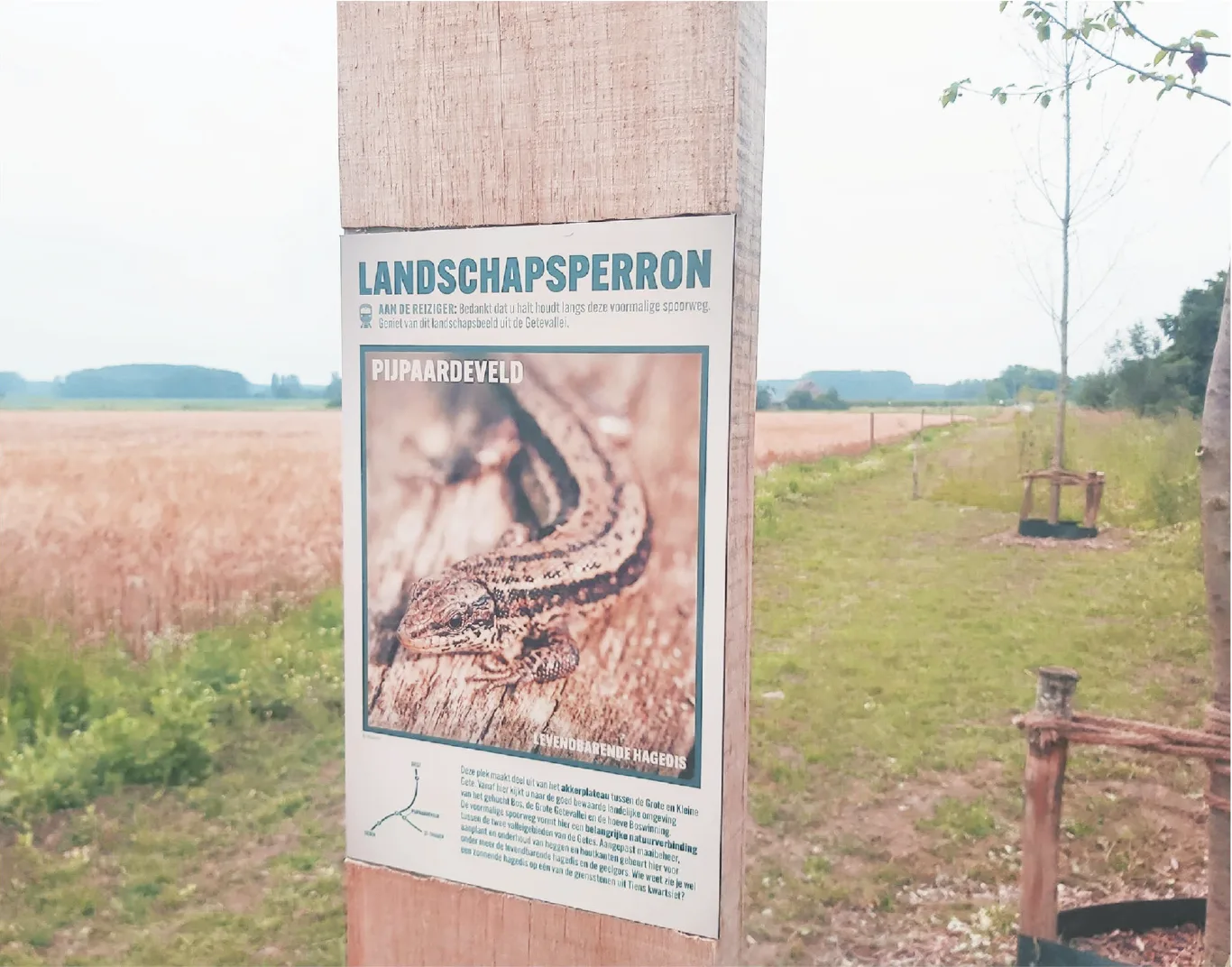 Plant en Houtgoed ontwikkelde binnen een design & build-traject een reeks landschappelijke ingrepen die vormelijk verwijzen naar historische perroninfrastructuur. Elke tussenkomst werd gekoppeld aan een specifieke ecologische context, door de relatie te leggen met een kenmerkende soort of habitat van de omgeving, zoals Levendbarende hagedis, Wulp, Knautia, Kamsalamander of Gele kwikstaart — indicatorsoorten voor waardevolle lokale ecosystemen.