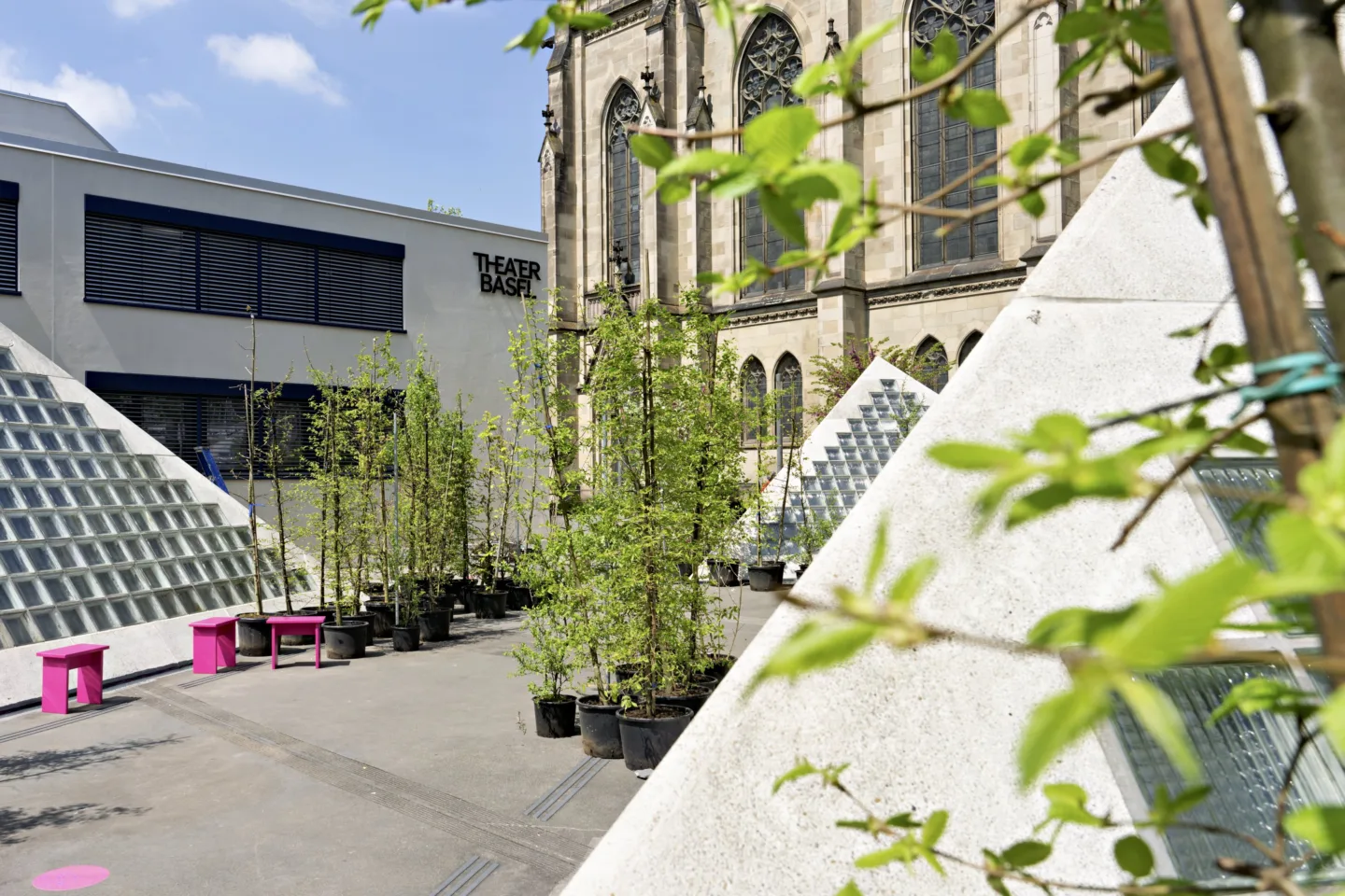 Een tijdelijk bos als scenografie: herprogrammering van het Theaterplein in Basel