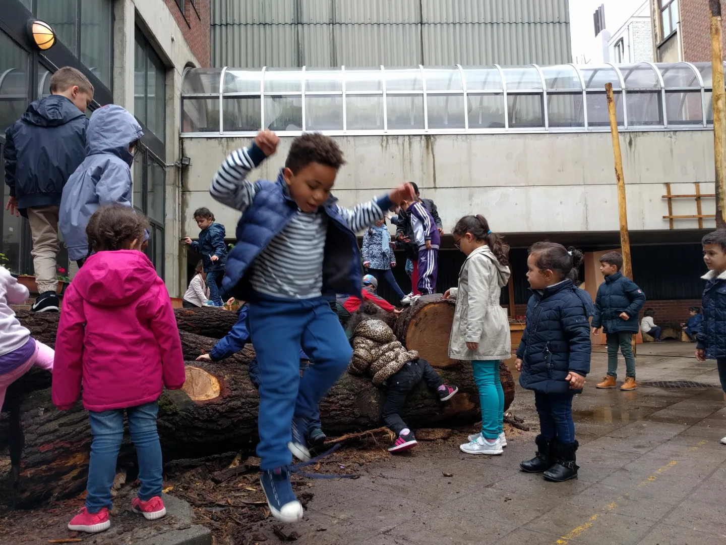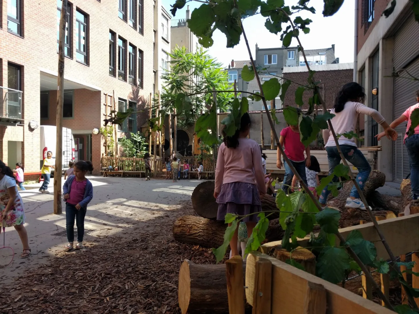 The Sint-Gillis School in Brussels engaged Plant en Houtgoed to redesign its playground through a design and build approach. The school faced extremely high play pressure on the very limited outdoor space available. Before the project, recess often had to be cancelled due to the high number of incidents caused by overcrowding and a lack of engaging play elements.
