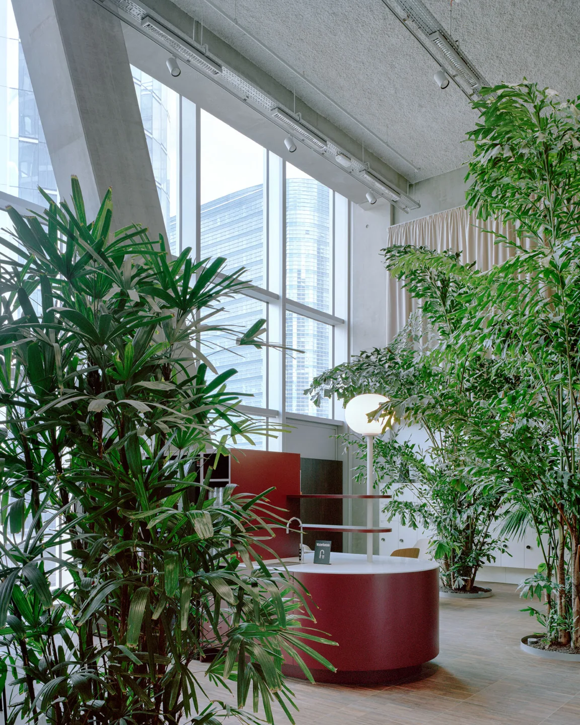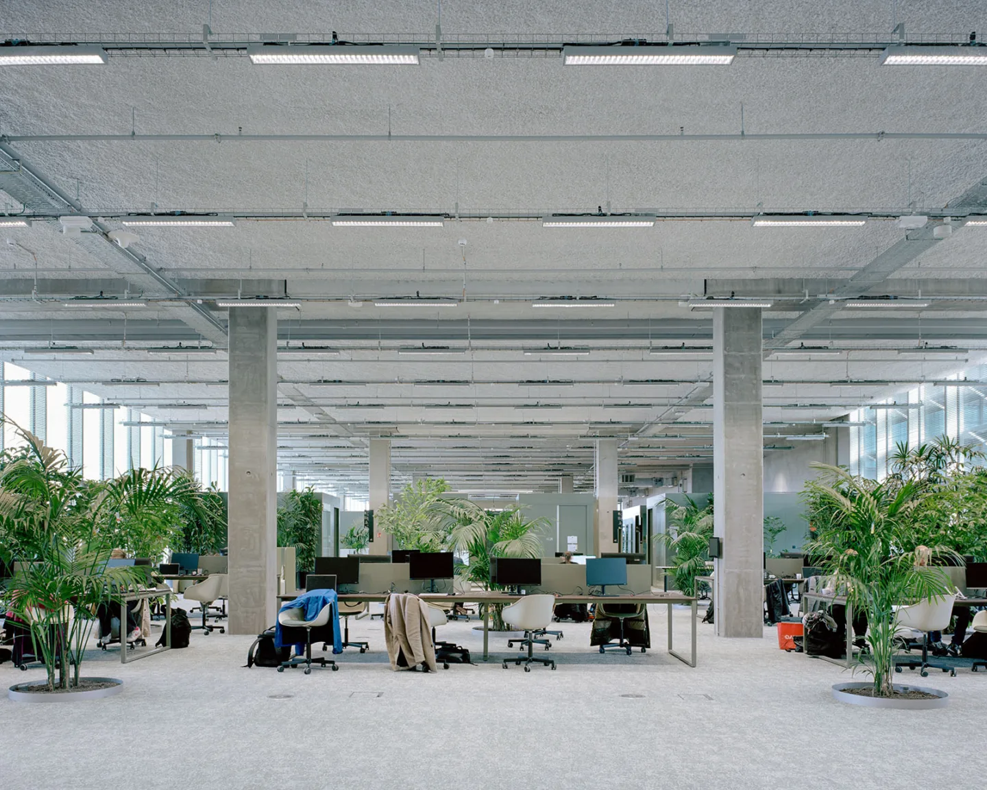 The vegetation strategy for the office floors uses a dual approach: a permanent ‘young forest’ embedded in the flooring and a ‘mobile forest’ in pots that evolves with the needs of both users and plants. This layered approach makes the greenery functional and adaptable, improves the indoor climate, and ensures that nature is visually present at every workspace.