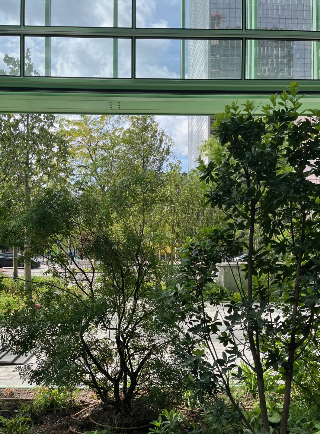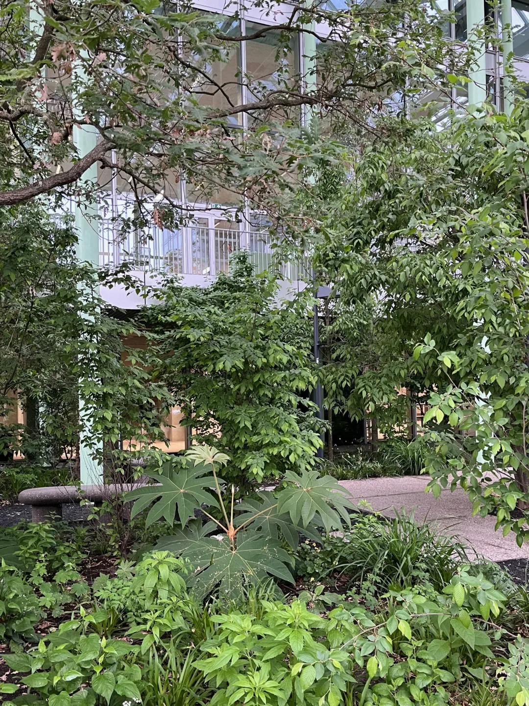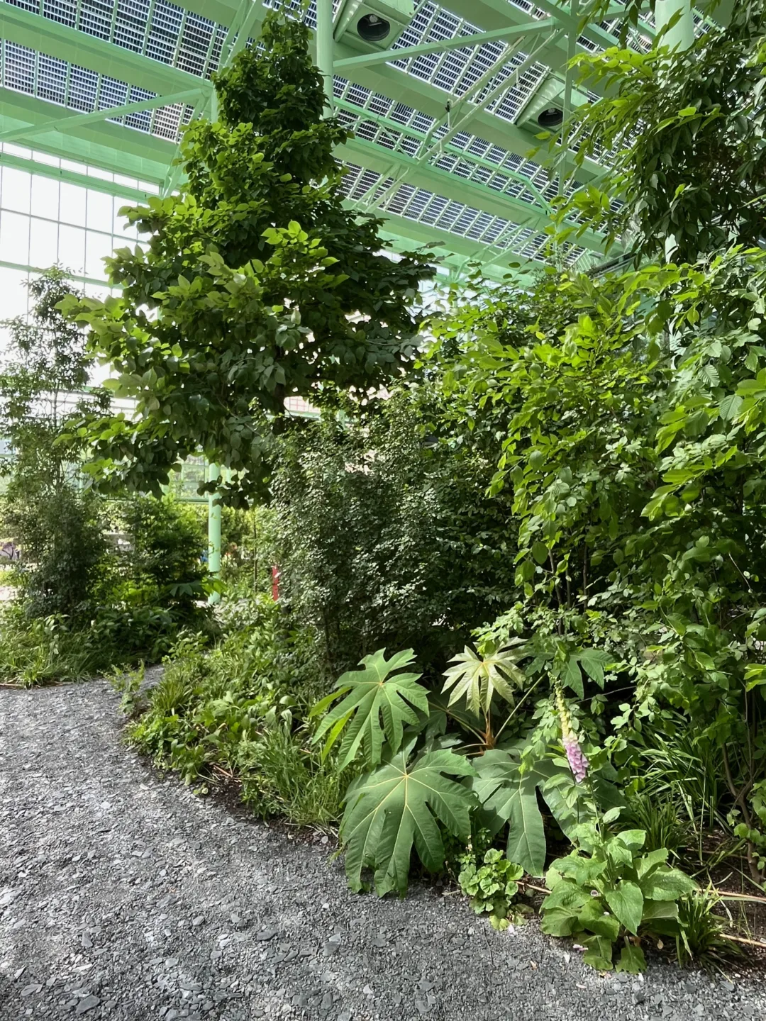De serre van 2.000 m² fungeert als een groene long in de stenige Noordwijk. Een multigenerationele beplanting van bomen, struiken en een diverse kruidlaag creëert een beschut ecosysteem dat uitnodigt tot rust en beleving. Dankzij een informele padenstructuur, en het gebruik van soorten met geur-, kleur- en textuurwaarde, ontstaat een immersieve natuurervaring midden in het stedelijke weefsel.