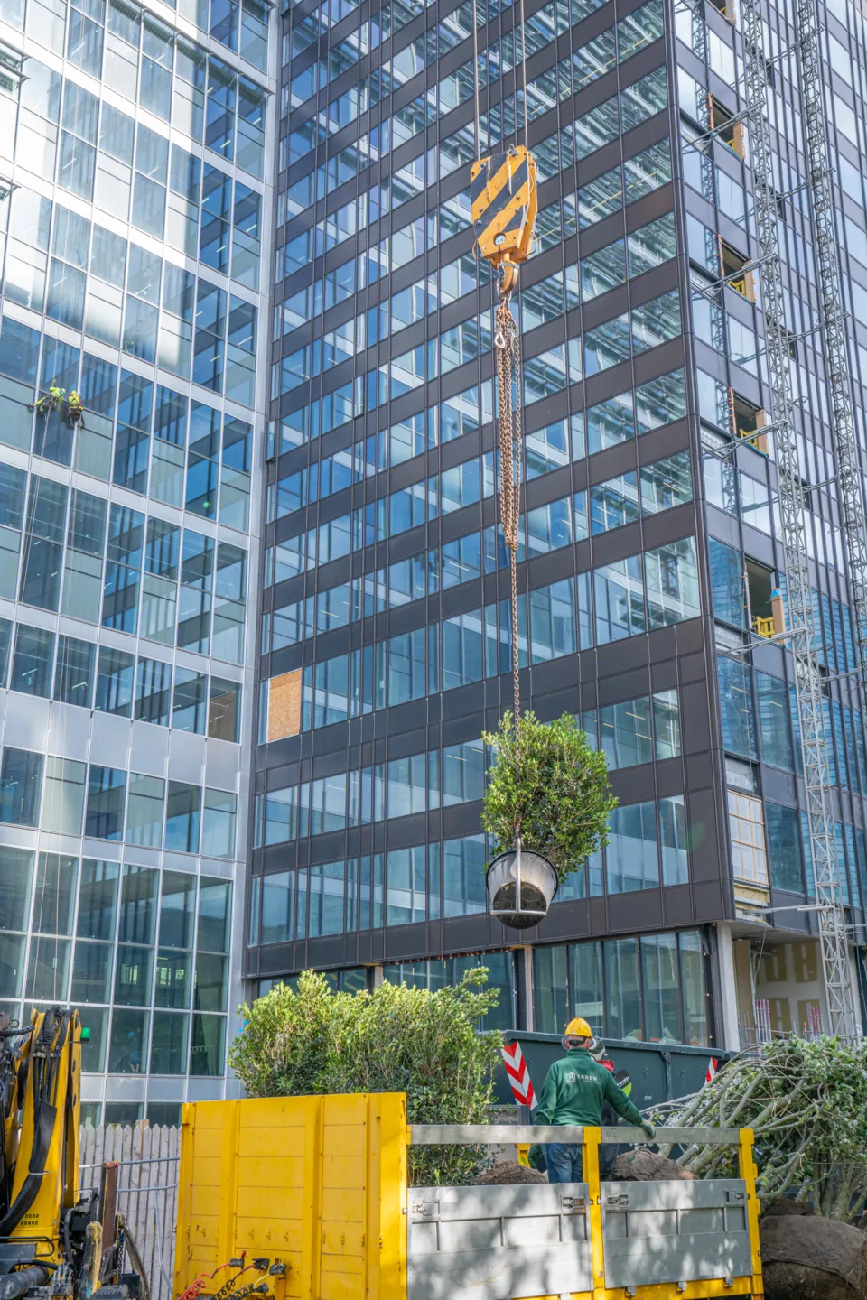Binnen dit ambitieuze project ontwierp Plant en Houtgoed de groenruimten en vegetatiestrategieën voor alle gebouwonderdelen en de omliggende publieke ruimte. Van een serre van 12 meter hoog tot een daktuin op 90 meter, van indoor beplanting op de kantoorverdiepingen tot een groene gevelstructuur: samen vormen ze een mozaïek aan habitats die de connectie met het omliggende groenweefsel versterken en uitbreiden.