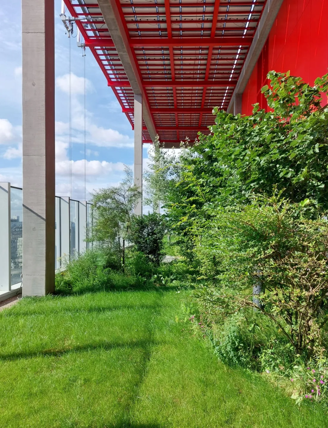 The rooftop garden at a height of 90 meters – one of the highest in Belgium – was designed as a robust habitat based on maritime and pioneer species with high wind resistance. This specific planting concept aligns seamlessly with thermophilic urban vegetation types and demonstrates how, even under extreme conditions, a biodiverse and visually rich garden can emerge with a core of native species.
