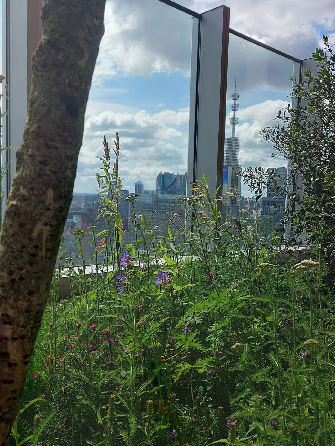 De daktuin op 90 meter hoogte – een van de hoogste van België – werd ontworpen als een robuust habitat, gebaseerd op maritieme en pionierssoorten met een hoge windresistentie. Dit specifieke beplantingsconcept sluit naadloos aan bij thermofiele stedelijke vegetatietypen en demonstreert hoe, ook onder extreme omstandigheden, met een kern van inheemse soorten een biodiverse en visueel rijke tuin tot stand kan komen.